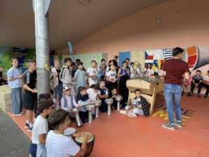 Enfin, Mr Benaouda et Mr Beral ont animé un temps musical sous le préau avec un mini concert de trompettes et de percussions ! Ça promet de belles recrues pour la chorale instrumentale talents