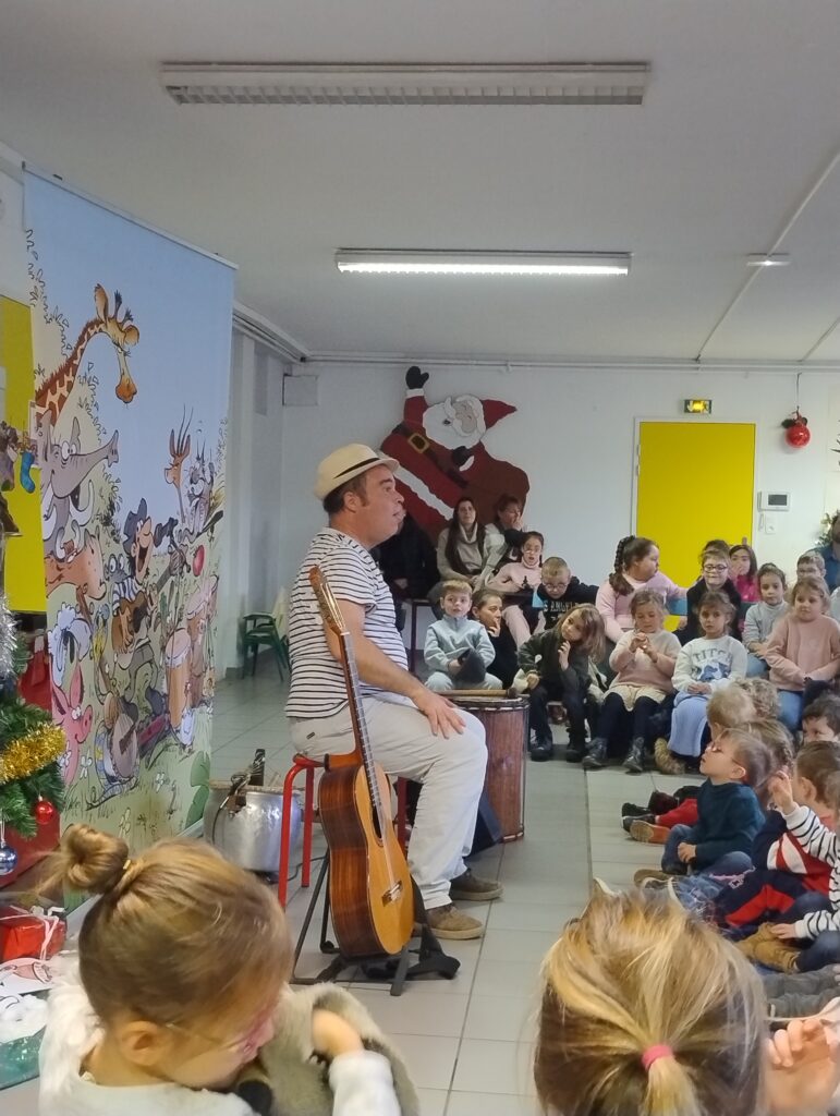 Ce matin, les élèves de maternelle, de cycle II et de l’UEE ont assisté au concert de Nonolulu ! Ce fut un joli spectacle, très interactif durant lequel les enfants et les adultes ont été très actifs !!! Un grand merci à Arnaud Solignac pour sa représentation et son dynamisme.