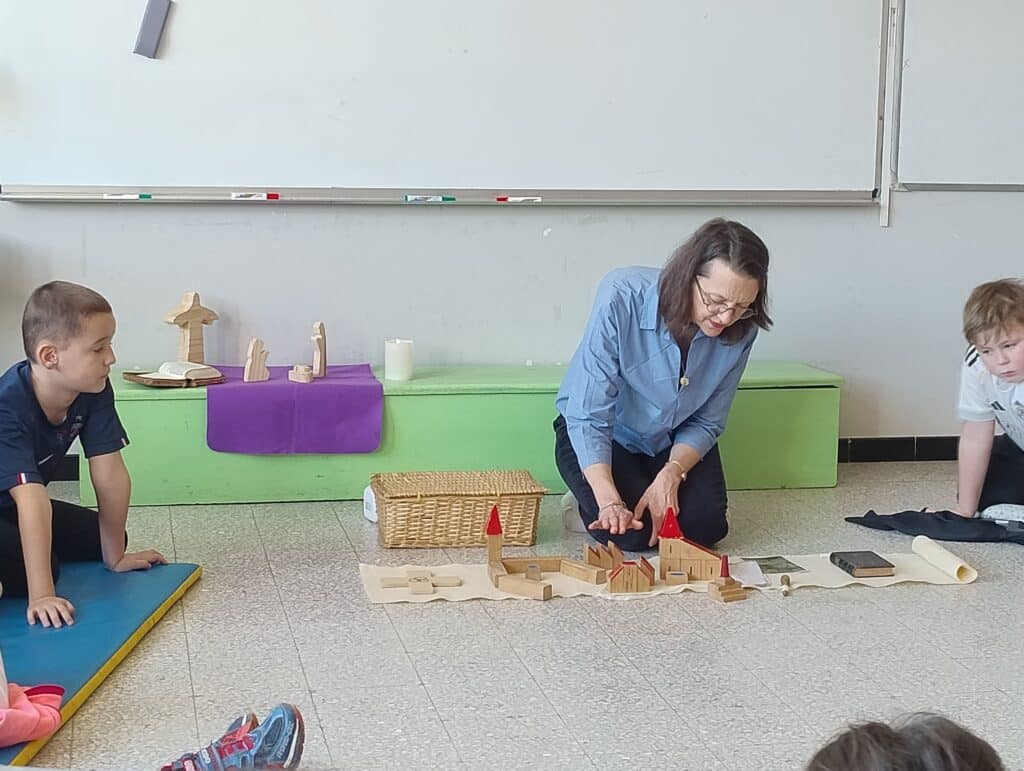 Le Godly Play est une approche pédagogique inspirée de la méthode Montessori. Elle permet aux enfants de découvrir un récit à travers une mise en scène avec des objets et des personnages, racontée lentement par un adulte. Les enfants sont invités à observer, écouter, imaginer et réfléchir au sens de l’histoire.